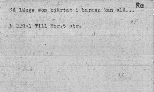 //// KCf //// Så länge som hjärtat i barmen kan slå... //// A 229:1 Till Mor.5 str. //// ". IllI , „ ...J < ..,:. • ' , \ //// *. //// * .^s ////