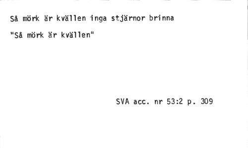 //// Så mörk är kvällen inga stjärnor brinna "Så mörk är kvällen" //// SVA acc. nr 53:2 p. 309 ////