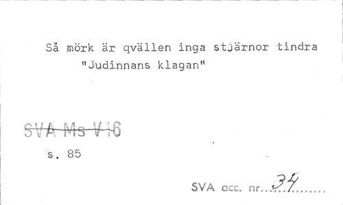 //// Så mörk ar qvällen inga stjärnor tindra "Judinnans klagan" //// s. 85 //// SVA ccc. nr. //// J.f... ////