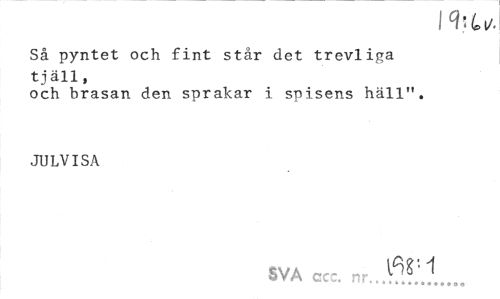 //// I<?«U //// Så pyntet och fint står det trevliga tjäll, //// och brasan den sprakar i spisens häll". JULVISA //// SVA ccc. nr. ^.l... ////