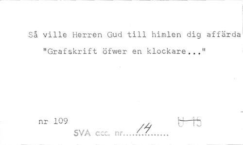//// Så ville Herren Gud till himlen dig affärda "Grafskrift öfwer en klockare..." //// ^ i no M—1-4, //// ilJ. , / //// ,/j //// SVA ccc. nr.. / ,< ... ////