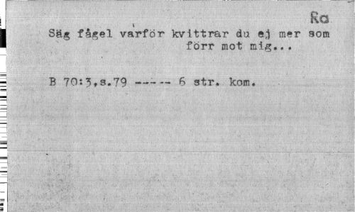 //// I , R° //// I Säg fågel varför kvittrar du e,i mer som //// I förr mot //// i B 70:s.79 —6 str. kom. //// 3 //// 3 i //// 3. | . - H -t. jj ////
