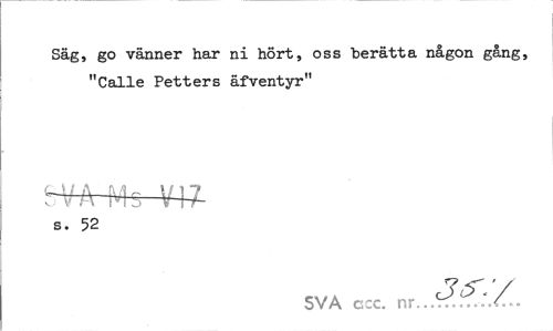 //// Säg, go vänner har ni hört, oss berätta någon gång, "Calle Petters äfventyr" //// s. 52 //// SVA ccc. nr...0^5'/! ////