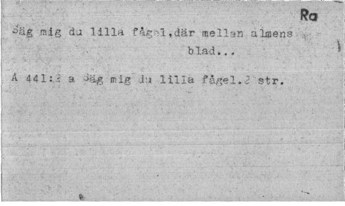 //// Ra //// oäg mig du lilla fågil,där mellan åkens - //// blad... ^ //// A 441: -: a lag mig ±x lilla fågel.2 str. ^ - ////
