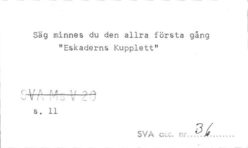//// Säg minnes du den allra första gång "Eskaderns Kupplett" //// c P/-\! //// V t \ Jv t •„ w £. J s. 11 //// SVA ccc. nr.. H... ////