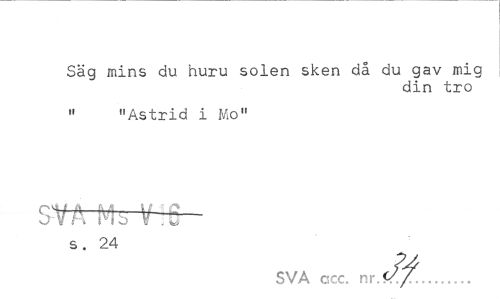 //// Säg mins du huru solen sken då du gav mig //// din tro //// " "Astrid i Mo" //// SVA Ms //// s, 24 //// SVA ccc. ////