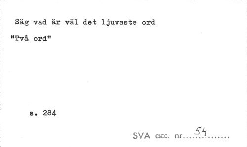 //// Säg vad är väl det ljuvaste ord "Två ord» //// s. 284 //// SVA acc. nr...^... ////