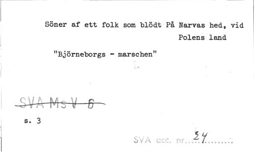//// Söner af ett folk som blödt På Narvas hed, vid //// Polens land //// "Björneborgs - marschen" //// s. 3 //// SVA , -. nr,,,t ... ////