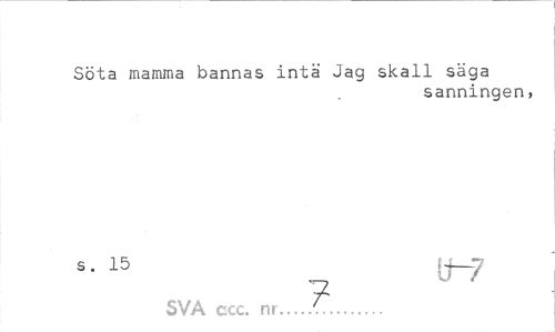 //// Söta mamma bannas inta Jag skall säga //// sanningen, //// S. 15 y—7 //// ? //// / //// OVjH CCC. III... ////