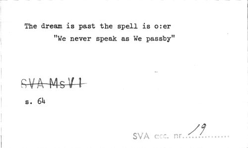 //// The dream is past the spell is o:er "We never speak as We passby" //// s. 6k //// SVA c-', nr... ////