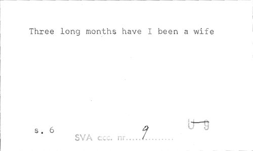 //// Three long months have I been a wife //// s, 6 f //// SVA cc;. nr... /.,... . ////