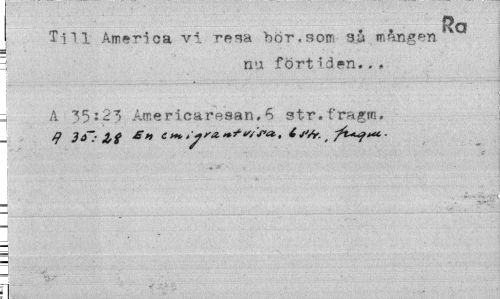 //// n //// Till America vi resa bör.som så m&ngen i nu förtiden.., //// 3 A 35: 23 -Americaresan. 6 str.fragm. //// J; . ff 2,f £ * C>h. s^ra.M.J-f/fa, i j'/r. 'ft**?**- //// ii" 1 ////