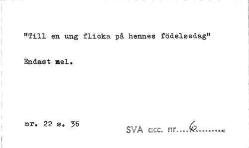 //// "Till en ung flicka på hennes födelsedag" Endast mel. //// j //// nr. 22 s. 36 „/L //// SVA ccc. nr...k?... ////