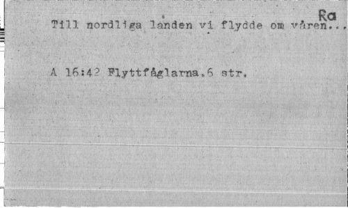 //// i Ra //// Till nordliga landen vi flydde o» våren... //// A 16:4? Flyttfåglarna.6 str, //// i . ¦¦ ; . .. ¦ . v ¦ ¦ ¦ ////