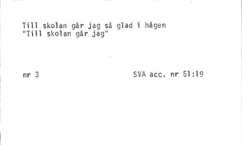 //// Till skolan går jag så glad i hågen "Till skolan går jag" //// nr 3 SVA acc. nr 51:19 ////