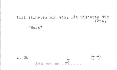 //// Till sälheten min son, låt visheten dig //// föra, //// "Wers" //// s. U-2 //// SVA ccc. nr...f~... ////