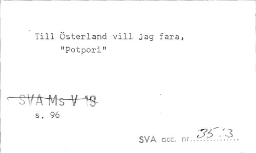 //// Till Österland vill Jag fara, "Potpori" //// s. 96 //// SVA ccc. nr...«" ////