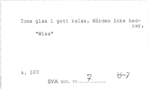 //// Torna glas i gott kalas, Wärden icke hedrar , //// "Wisa" //// th? //// SVA ccc. nr...T... ////