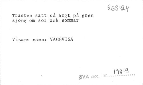 //// Trasten satt så högt på gren sjöng om sol och sommar //// Visans namn: VAGGVISA //// £VA ccc. nr ... ////