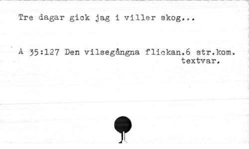 //// Tre dagar gick jag i viller skog... //// A 35:127 Den vilsegångna flickan.6 str.kom. //// textvar, //// t ////