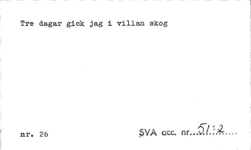 //// Tre dagar gick jag i viller skog... //// nr. 26 SVA ccc. nr...5/. ////