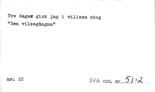 //// Tre dagam gick jag i yillsam skog "Den vilsegångna" //// I //// i I //// nr. 22 SVA acc. nr.. 5.1' J. . ////