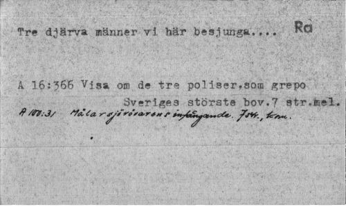 //// Dn //// Tre djärva männer vi här besjunga.,.. //// A 16:366 Visa, om de tre poliser,som grepo //// Sveriges störste bov,? str.mel» //// # /0V. 3/ täta r-ySrSs&r** r . . //// t ////