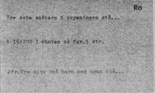 //// v. 4 ¦ vs <~i ! — Dm v //// . !- i- ,...y ¦ ' //// Tre söta småbarn i skymningen stå,.,., v v; . //// ; fS Ak flf \%*MO //// • ¦='.-. ¦ ¦ . ¦ - -i ¦ ¦ -' -v; //// A. 16:200 I väntan på'fa*. 5 str. //// '' V. -r. //// f '. ¦'«. " ¦:' "•/' ,.'.:''.•'*•¦¦¦•¦.Vv-T/ • 'V t. . ¦ '¦'') 'iii- //// Jfr.Tre söta småbarn med ögon blå.,.- ////