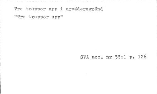 //// Tre trappor upp i urvädersgränd "Tre trappor upp" //// SVA acc. nr 53si P* 126 ////
