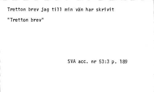 //// Tretton brev jag till min vän har skrivit "Tretton brev" //// SVA acc. nr 53:3 p. 189 ////