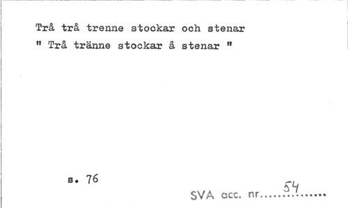 //// Trå trå trenne stockax och stenar " Trå tränne stockar å stenar n //// CL //// SVA acc. nr... ////
