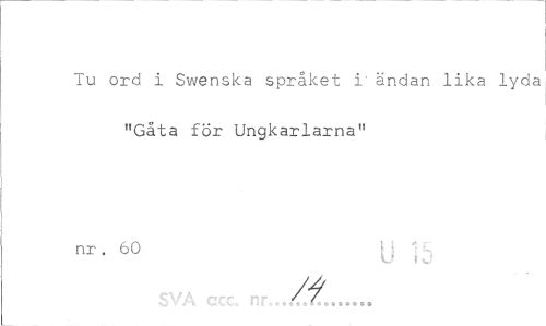 //// Tu ord i Swenska språket i ändan lika lyda "Gåta för Ungkarlarna" //// nr . 60 | i " //// vJ I s.' //// /f //// t . . o C G 6 « O 6 O O 9 6 O O 9 » ////