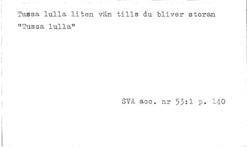 //// Tussa rulla liten vän tills du bliver storan "Tussa lulla" //// SVA acc. nr 53i 1 P« 140 ////
