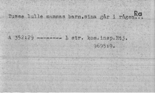 //// Ra //// Tuase lulle mammas barn,sina går i rågen.,, //// A 352:29 --- 1 str. kom.insp.Etj. //// 9695:9. ////