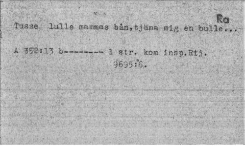 //// „ v Ra //// Tusae lulle mammas bån,tjäna mig en bulle... //// A 352:13 b--- l str. kora insp.Rtj. //// 9695:'6. •¦ -': - . ¦. ////