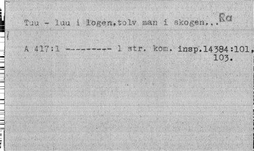 //// g Tu a - i au i logen, tolv man i skogen...1"'1' !} //// A 417:1---1 str. kon;, insp. 14394 slOl. //// 3 103. //// - ////