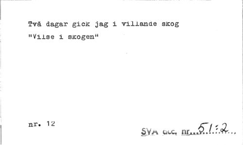 //// Tvä dagar gick jag i villande sicog "Vilse i sicogen'* //// nr. 12 JT i < 1 //// Ute, ' ////