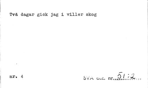 //// Två dagar gick jag i viller sJcog //// nr- 4 Sv/a cwc. nr...P.A/.Ä... ////