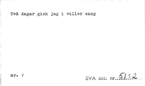 //// Två dagar gick jag i viller sJcog //// nr' ' SVA acc. nr...C/./..Ä .. ////