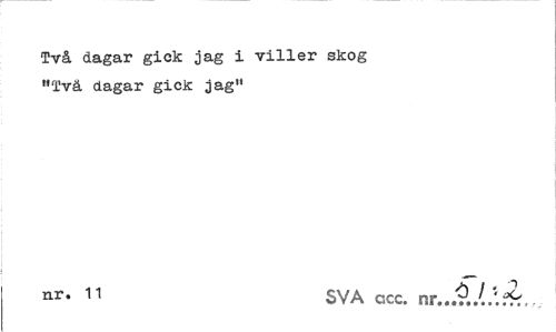 //// Två dagar gick jag i viller skog "Två dagar gick jag" //// nr* 11 SVA ccc. nt.ÅJ.!\&.,. ////