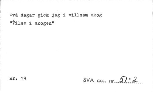 //// i'vå dagar gick jag i villsam skog "tilse i skogen" //// I //// ! i //// nr* 19 SVA ccc. nr...57.AÅ ////