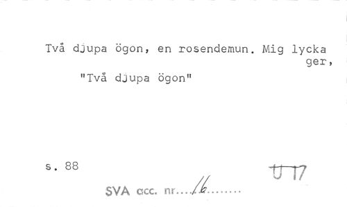 //// Två djupa ögon, en rosendemun. Mig lycka //// ger, //// "Två djupa ögon" //// s. 88 tTT7 //// SVA ccc. nr.../^... ////