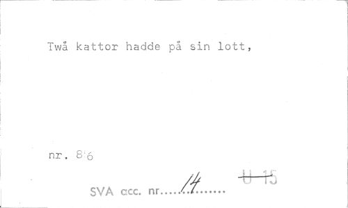 //// Twå kattor hadde på sin lott, nr, ; 6 //// /A -tHi //// SVA ccc. nr...'..L... ////