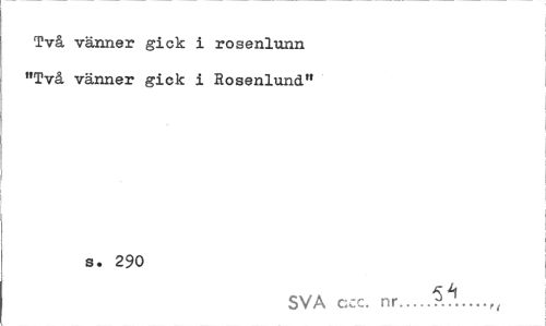 //// Två vänner gick i rosenlunn "Två vänner gick i Rosenlund" //// s. 290 //// SVA ccc. nr...J...,, ////