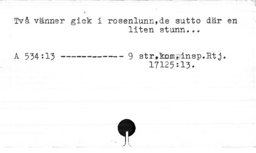 //// Två vänner gick i rosenlunn,de sutto där en //// liten stunn... //// A 534:13 --- 9 str,kcmpinsp.Rtj. //// 17125:13. //// t ////