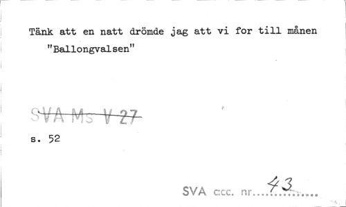 //// Tänk att en natt drömde jag att vi for till månen "Ballongvalsen" //// SVA Ms V-27- //// s. 52 //// * *H1 //// SVA ccc. nr... / / ////