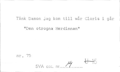 //// Tänk Damon jag kom till wår Cloris i går "Den otrogna Herdinnan" //// nr , 75 //// * *H5 //// SVA ccc. nr... / / ... ////