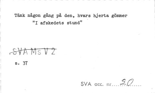 //// Tänk någon gång på den, hvars hjerta gömmer "I afskedets stund" //// s. 3T //// SVA acc. nr. ////