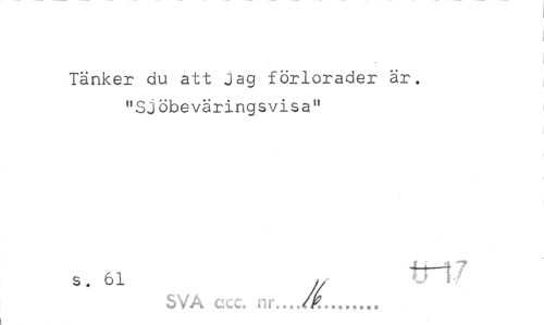 //// Tänker du att jag förlorader är. "Sjöbeväringsvisa" //// s. 61 , tn? //// SVA ccc. nr...,/å... ////