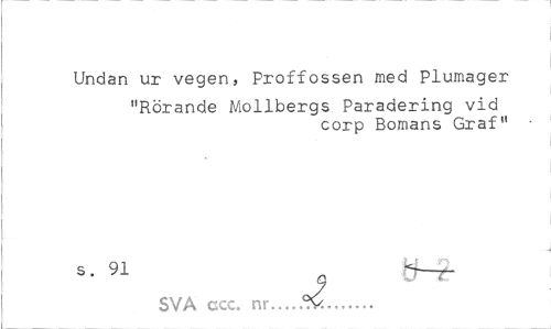 //// Undan ur vegen, Proffossen med Plumager //// "Rörande Mollbergs Paradering vid //// corp Bomans Graf" ¦ //// s- 91 , 8-2-SVA ccc. nr...'^v... ////